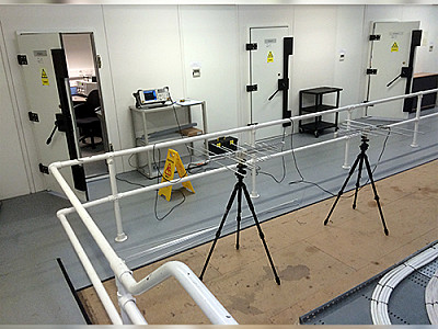 Third and finally, Continuous Wave Immersion (CWI) Testing is carried out on the completed EMP facility with its equipment installed and functioning. This is carried out using a range of large antennas and signal generators to illuminate the EMP facility and measure the internal signals, and monitor how it functions.