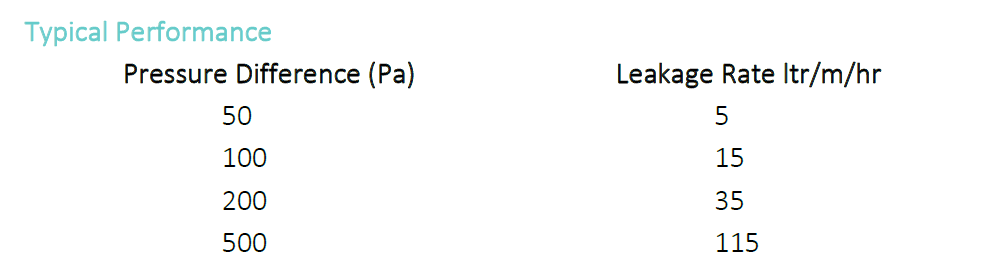 Leakage rate defined as litres of air per linear metre of door seal per hour, i.e. a 2mH x 1mW door has 6 linear metres of seal.